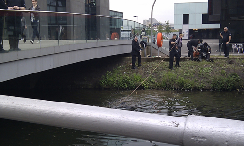 Police have recovered a combat knife from the Brayford after it was seen floating by people on the bridge by the Engine Shed, says a source near the scene.
